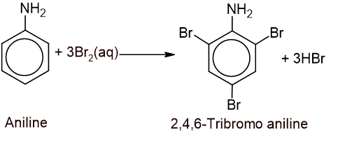 1. Bromination: Aniline reacts with aqueous bromine to form a white precipitate of 2,4,6-tribromo aniline.