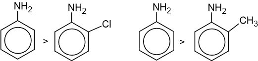 - Presence of any substituents in the ortho position decreases the basic nature of aniline.