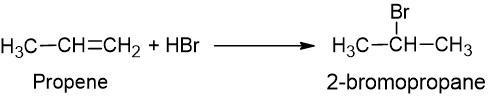 When an unsymmetrical reagent is added to an unsymmetrical alkene, the positive part of the reagent goes to the unsaturated carbon having a higher number of hydrogen. It takes place for HCl, HBr and HI. It proceeds through an electrophilic addition mechanism.