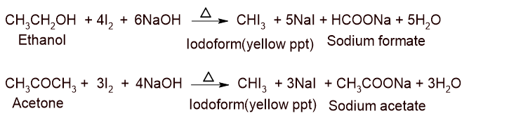 Alcohol containing CH3-CH-OH and aldehyde and ketone having CH3-C=O structural unit is treated with iodine and aqueous NaOH to give a compound having yellow crystalline ppt with hospital smell known as Iodoform. This test is called the iodoform test.