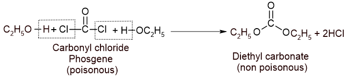 ii. Small amount of ethanol is added which converts phosgene into non-poisonous diethyl carbonate.