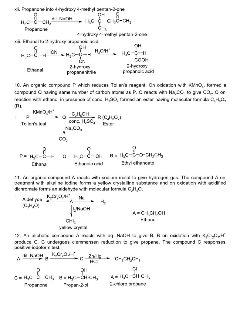 10. An organic compound P which reduces Tollen’s reagent. On oxidation with KMnO4, it formed a compound Q that has