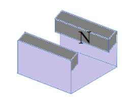 - A student wants to measure the magnetic flux density between the poles of two weak bar magnets mounted on a steel yoke as shown in the figure. The magnitude of the flux density is between 0.02T and 0.04T.